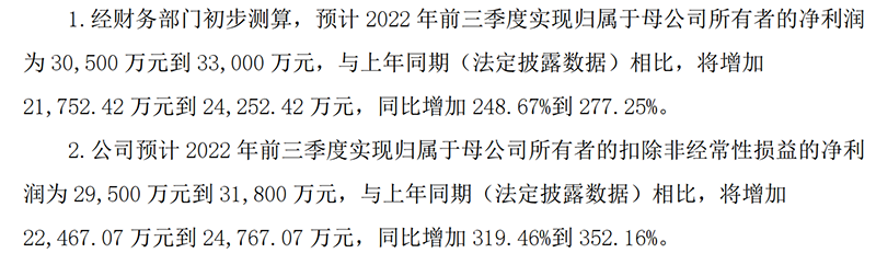 三孚股份是三氯氢硅产能最大的上市公司。公司披露的三季报显示,今年第三季度,实现营业收入7.14亿元,归属于母公司股东的净利润2.18亿元,同比分别增长43.58%和120.06%。
