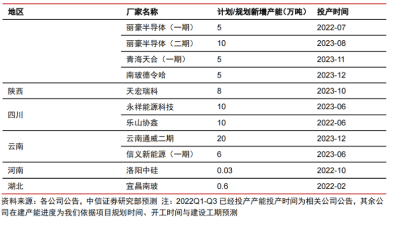 而中信证券能源化工行业首席分析师王喆10月11日发布的研报显示,2022年多晶硅新增产能将达约70万吨,2023 年预计新增产能约164万吨。