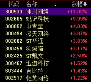 游戏板块逆势走强 姚记科技2连板 冰川网络涨超11%