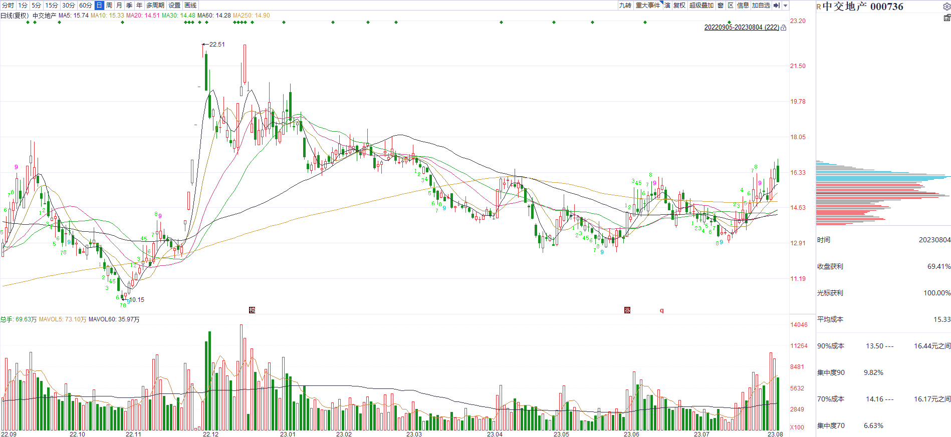 技术分析来看,作为曾经的炒作妖股,这股曾从4.65一路拉升至31.70高位,妖股气息十足,其后便开始走单边下跌行情,期间有过拉升,但之后基本都是从哪来回哪去的走势,未能得到持续炒作。同时,在本轮地产炒作行情中,这股未有过涨停板诞生,但低位补量特征却很明显,有种兵马未动粮草先行之势,加之,本身就具备一定的炒作龙头属性,预计随时有望得到大资金的青睐,建议可以沿着5、10日均线跟踪,以短线思维对待即可。
