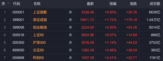 截至收盘,沪指涨0.93%,深证成指涨1.72%,创业板指涨2.5%。两市近4500股飘红,quan全天成交逾1.7万亿元。