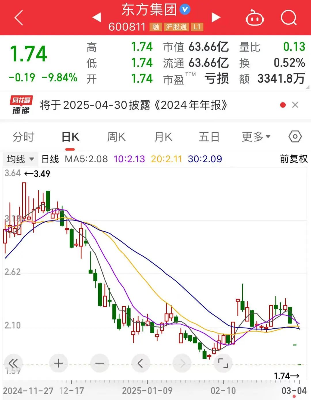 3月4日早盘,东方集团股价再次跌停,跌停板封单1268.2万手,半日成交额达到3341.8万元。昨日,该股也遭遇一字跌停。