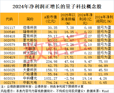 从已公布的2024年业绩数据来看,量子科技概念股业绩整体欠佳。
