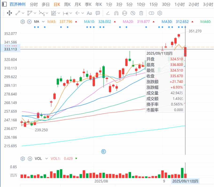 以百济神州为例,由于年初至今公司美股股价最大涨幅已达103.43%,在市场利空刺激下,投资者更倾向“落袋为安”,以致其9月10日盘中股价跌幅一度达到12%,尾盘跌幅才出现收窄。然而,市场情绪很快得以修复。截至9月11日收盘,百济神州美股较前一日强势反弹,最终收涨6.93%。