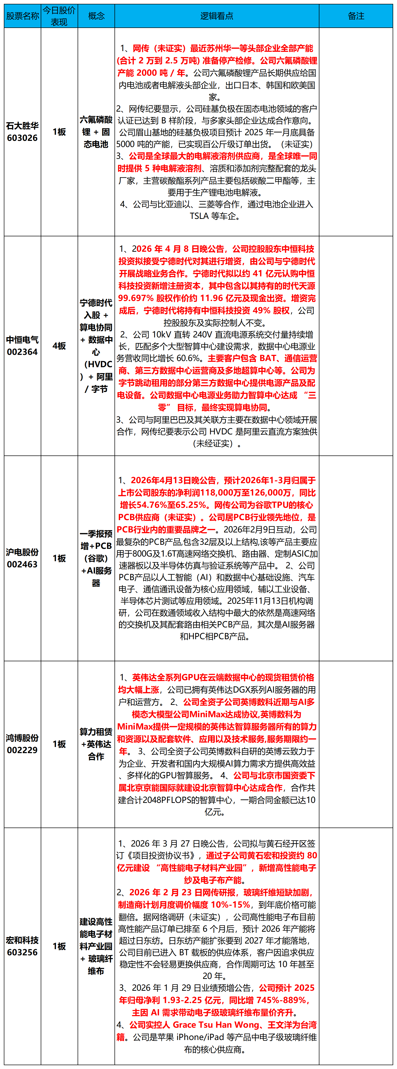 (以上个股仅作梳理,不作为买卖依据,据此操作风险自担)
