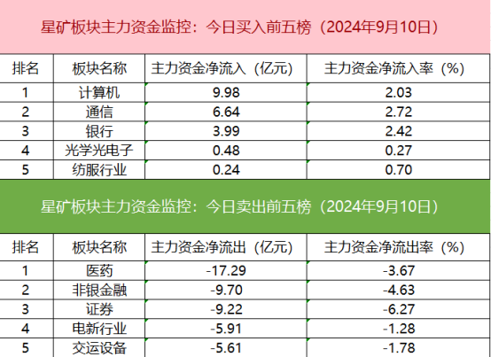 从主力板块资金监控数据来看,计算机板块主力资金净流入居首。