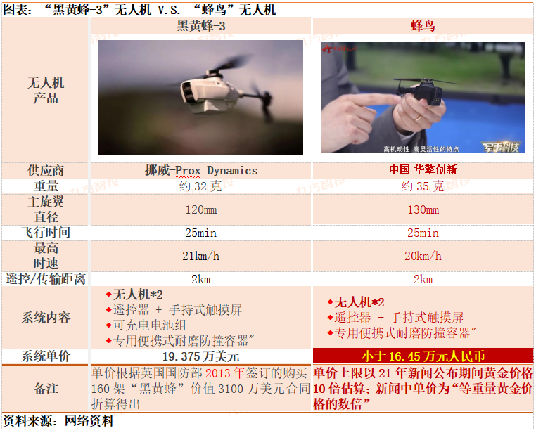 例如,在美军面向未来作战的陆军单兵系统规划中,美军方希望开发的“士兵随身传感器”(soldier-borne sensors)计划对应的“黑黄蜂”微型侦察无人机公开报价可以高达接近19.4万美元/套。根据英军的使用经验与反馈,这种重量不到1两(<50克)的微型无人机很容易成为演习/行动中的“撒手没”。顺道一提,中国“华擎创新”在阿布扎比国际防务展上展示出的类似产品价格预计低于16.5万元人民币。