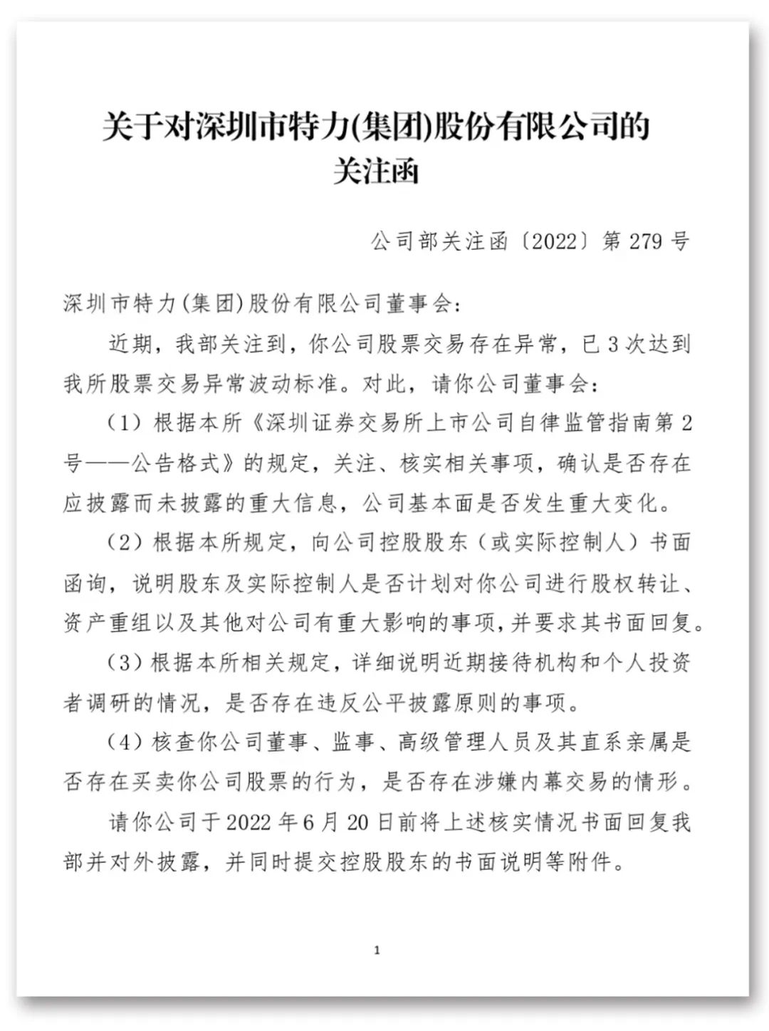 深交所下发关注函