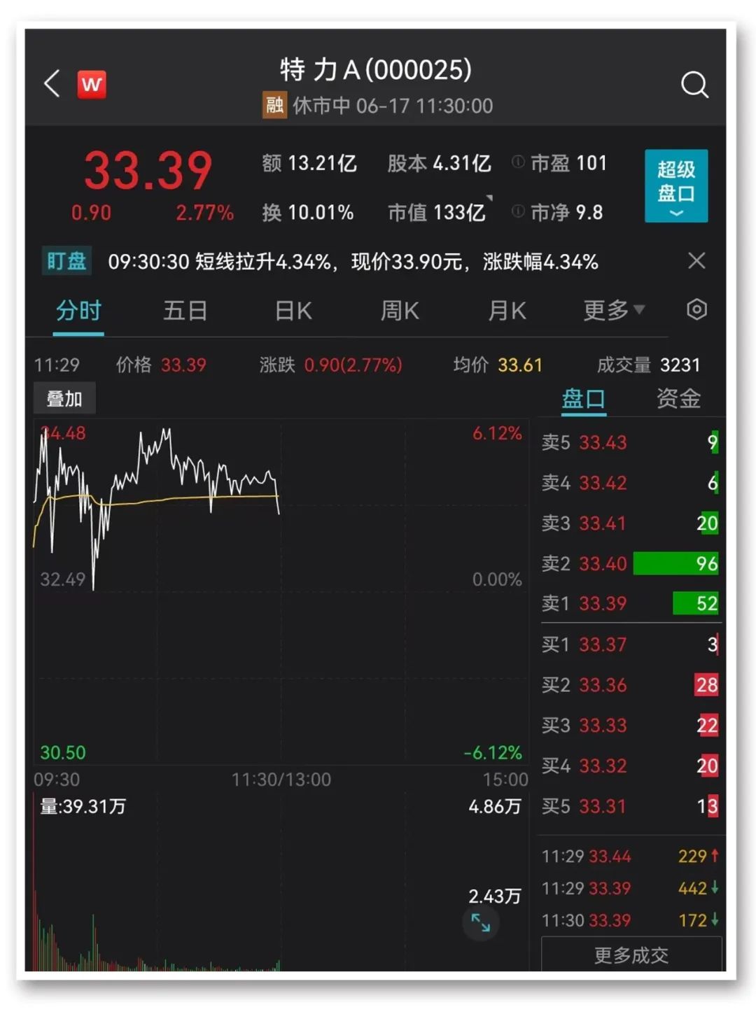 6月17日上午,深交所紧急下发关注函,要求核实说明股价异动的情况、是否存在涉嫌内幕交易等情形。截至上午收盘,特力A报每股33.39元,上涨2.77%。