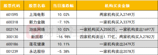 龙虎榜机构活跃度一般,传媒股上海电影和游戏股游族网络均获机构买入超2000万;新力金融获机构买入超3000万。