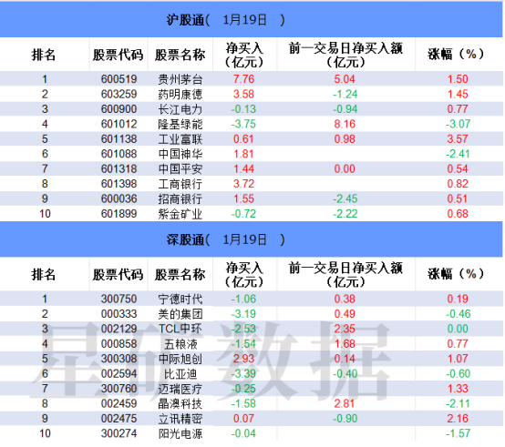 沪深股通两市前十大成交中净卖出个股居多。买入方面,贵州茅台净买入居首,连续两日获净买入超5亿;工商银行和药明康德净买入分居二、三位。