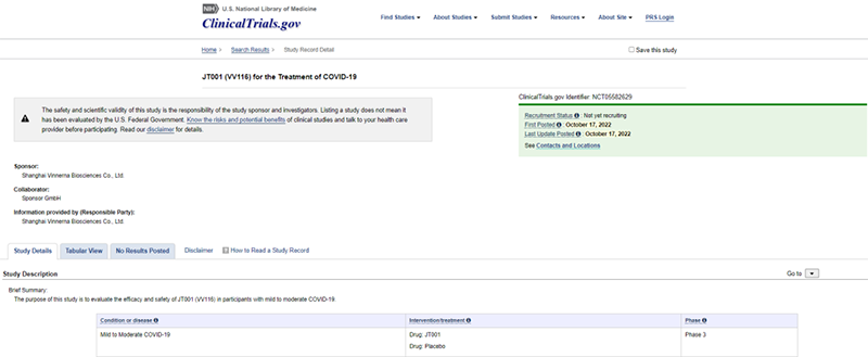 日前,全球权威临床试验登记网站ClinicalTriais.gov最新显示出一项新的临床试验。君实生物的新冠口服药VV116将在10月21日开启一项多中心、双盲、随机的Ⅲ期临床试验,将与安慰剂对比治疗轻度至中度的新冠患者。君实生物预计入组参与者1200名,试验完成时间为2023年5月30日。