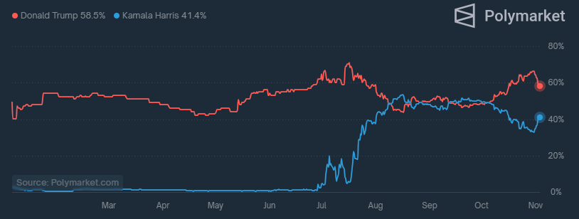 目前,两者支持率相差无几。《福布斯》的一项民意调查结果显示,哈里斯仅以1%的微弱优势领先特朗普。博彩网站则“重注”特朗普,虽然近几天略有回撤。