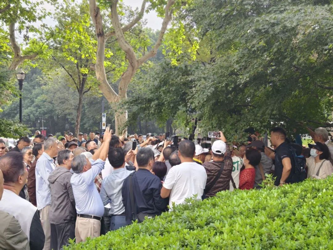 在另一侧,几位爷叔和阿姨正在议论美联储11月降息的相关消息。不过,他们反对任何人拍摄,随时阻止举起手机的人。