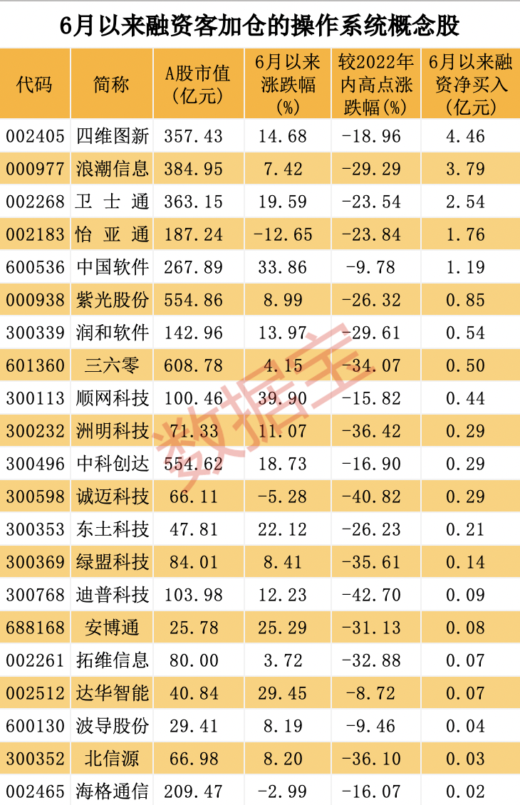 证券时报·数据宝统计,A股中属于操作系统概念的股票超50只。截至6月30日,概念股6月以来平均涨幅达到9.13%,小幅跑输同期沪深300指数。顺网科技累计涨幅39.9%排在首位,该股今日获得主力资金净流入1.4亿元。期间涨幅靠前的还有中国软件、达华智能、神思电子、新时达、安博通等。