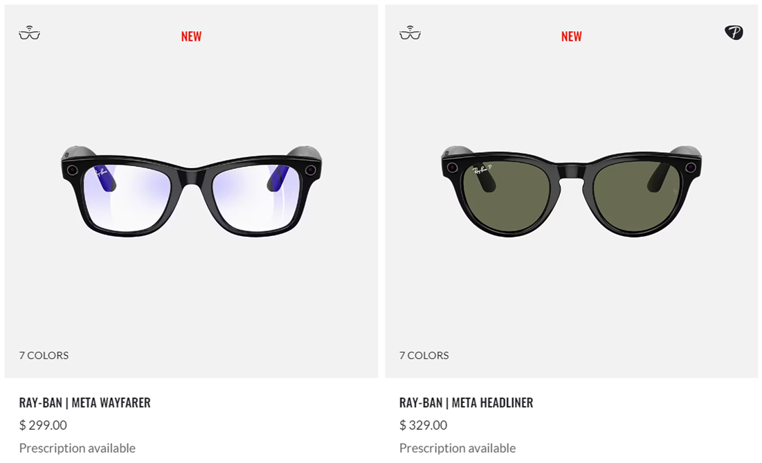 值得一提的是,根据官网,“雷朋xMeta智能眼镜”起售价为299美元。