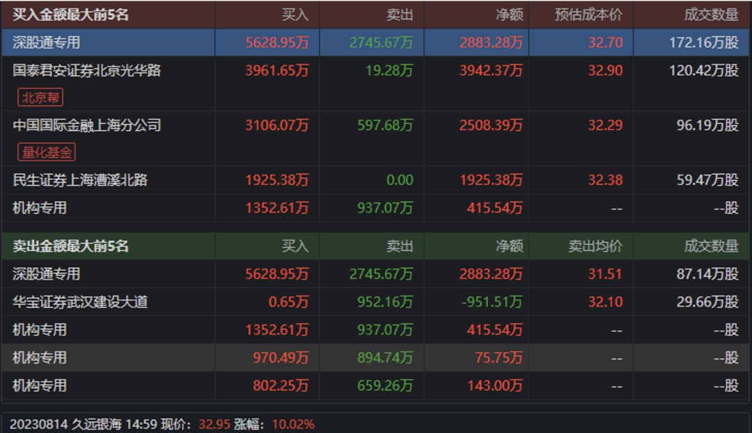 多只数据安全股出现在昨日的龙虎榜,其中久远银海获净买入1.09亿元,华是科技获净买入8186.67万元,南凌科技获净买入1772.34万元。