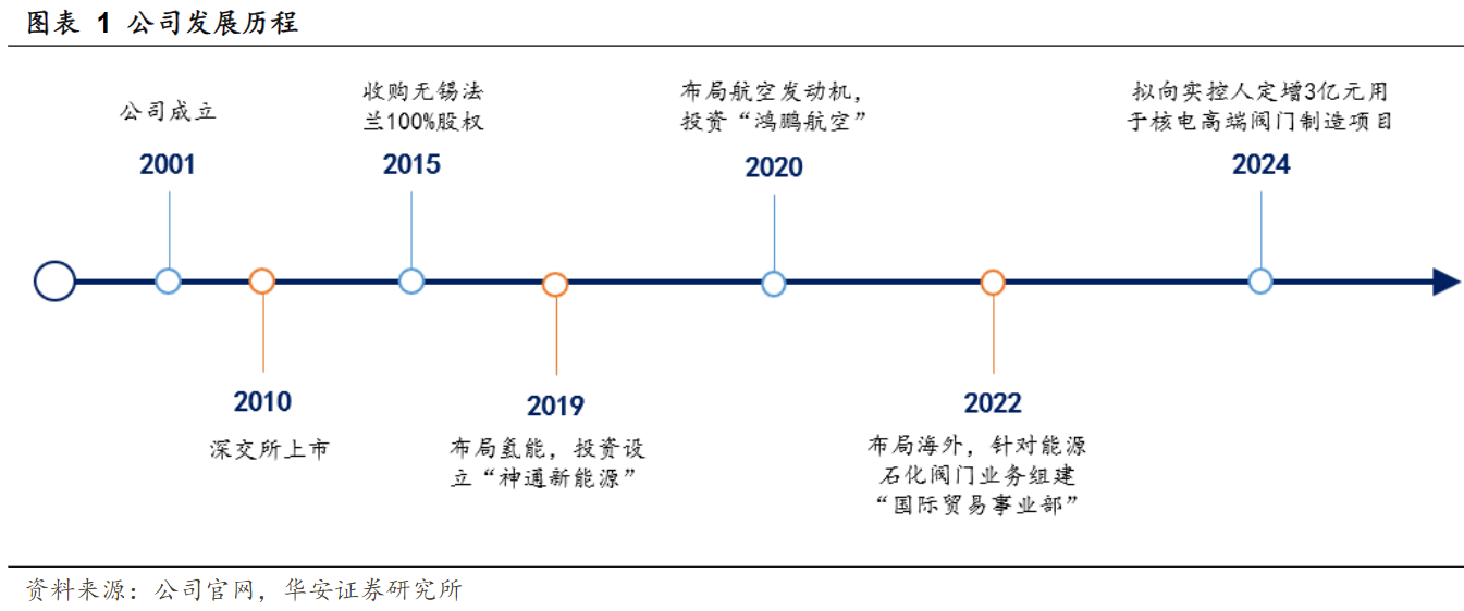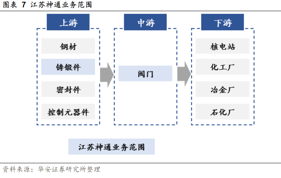 公司深耕特种阀门的研发和生产,是国内规模最大的阀门制造商之一,公司外延式发展加速,持续布局拓展下游赛道,全资收购无锡市法兰锻造。2017年,公司收购江苏瑞帆节能科技服务有限公司,打通节能阀门从生产到应用的各个环节。2019年,公司拓展氢能源应用领域特种阀门,向南通神通新能源科技有限公司注资500万元。2020年公司设立子公司江苏神通核能装备有限公司,核电业务再优化。
