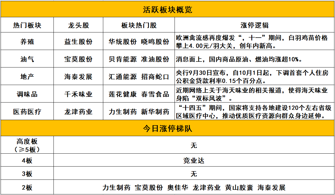 个股方面,教育板块竞业达4板,油气股宝莫股份2板,医药股龙津药业2板、力生制药2板。