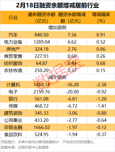 截至2月18日,市场最新融资余额为18514.37亿元,较上个交易日减少69.69亿元。
