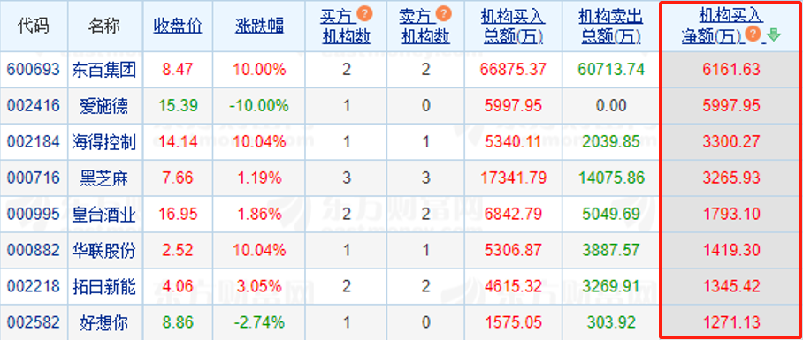 ►龙虎榜机构动向:1月3日,8股被机构净买入超1000万元,其中东百集团净买入最多,为6161万元。