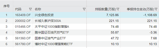 重仓股方面,于4月30日被实施退市警示风险的ST新潮为公募基金持有最多的个股,共有6只基金持有,涉及6家基金公司,总体持仓为7535.21万股,对比上季度末较少了4708.73万股。其中,兴全绿色投资持股最多,高达7125.86万股,该基金由邹欣管理,最新规模为37.94亿元。指数基金长城久泰沪深300A、鹏华国证石油天然气ETF、国泰中证油气产业ETF等分别持有ST新潮221.15万股、55.87万股、47.72万股,指增型基金太平中证1000指数增强A等则持有74.48万股。