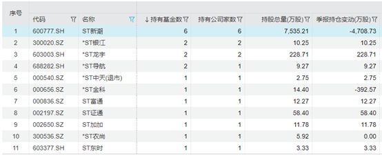 11只ST股被公募重仓