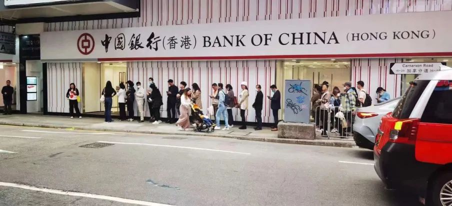 3月22日早上7时,在香港尖沙咀加拿分道中国银行(香港)某网点,记者看到办理银行业务的客户已排起了长队。而此时距离银行开门营业还有两个小时。