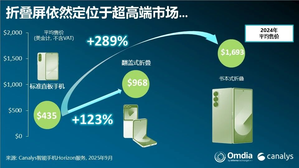 价格往往是一把双刃剑。2024年,书本式折叠屏手机的平均售价(ASP)比普通直板机高出289%,而翻盖型折叠机的平均售价高出123%。高端化对品牌认知和收入驱动至关重要,但也排除了大部分潜在消费者。