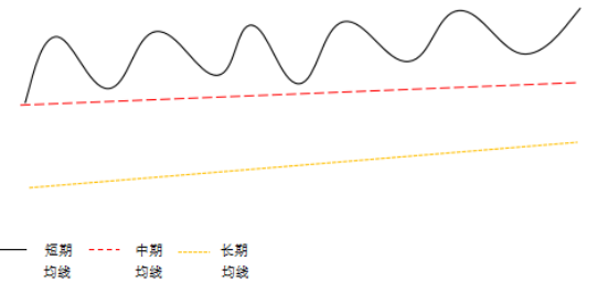 (2)股价或指数短期和中期均线反复缠绕,形成均线粘合形态,整体上略向上移动。