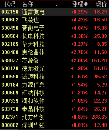 7月28日,华为概念股大幅高开,截至发稿,通富微电涨逾8%,飞荣达、赛微电子均涨逾4%,长电科技、华天科技、惠伦晶体等多股纷纷跟涨。