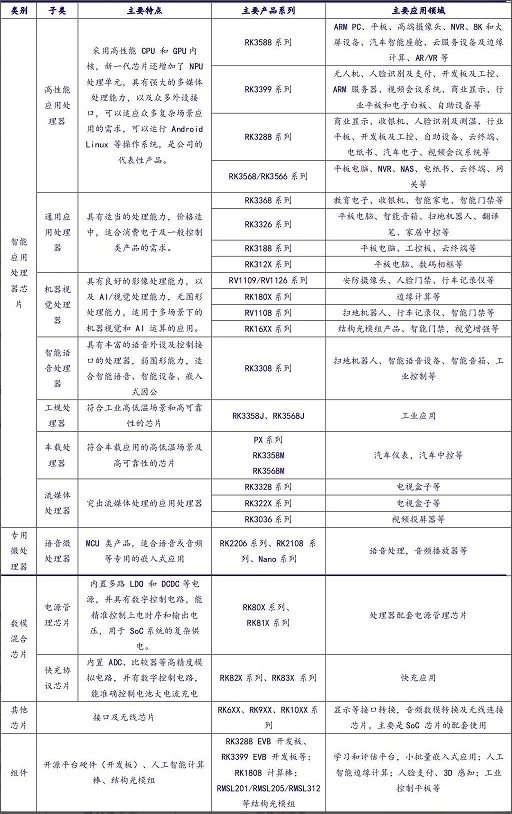公司主要应用处理器产品详细介绍如下: