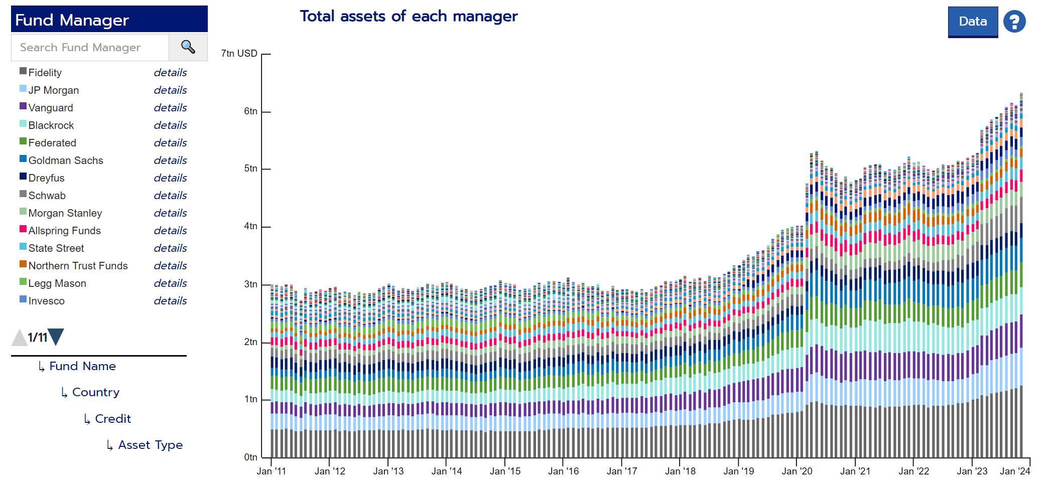 这种悸动,我们在过去两年的美国投资者身上也曾看到过。受到白宫联手美联储“大水漫灌”、叠加后续美联储暴力加息525个基点的刺激,美国货币市场基金规模持续快速增长,光是过去一年就增加了1万亿美元。
