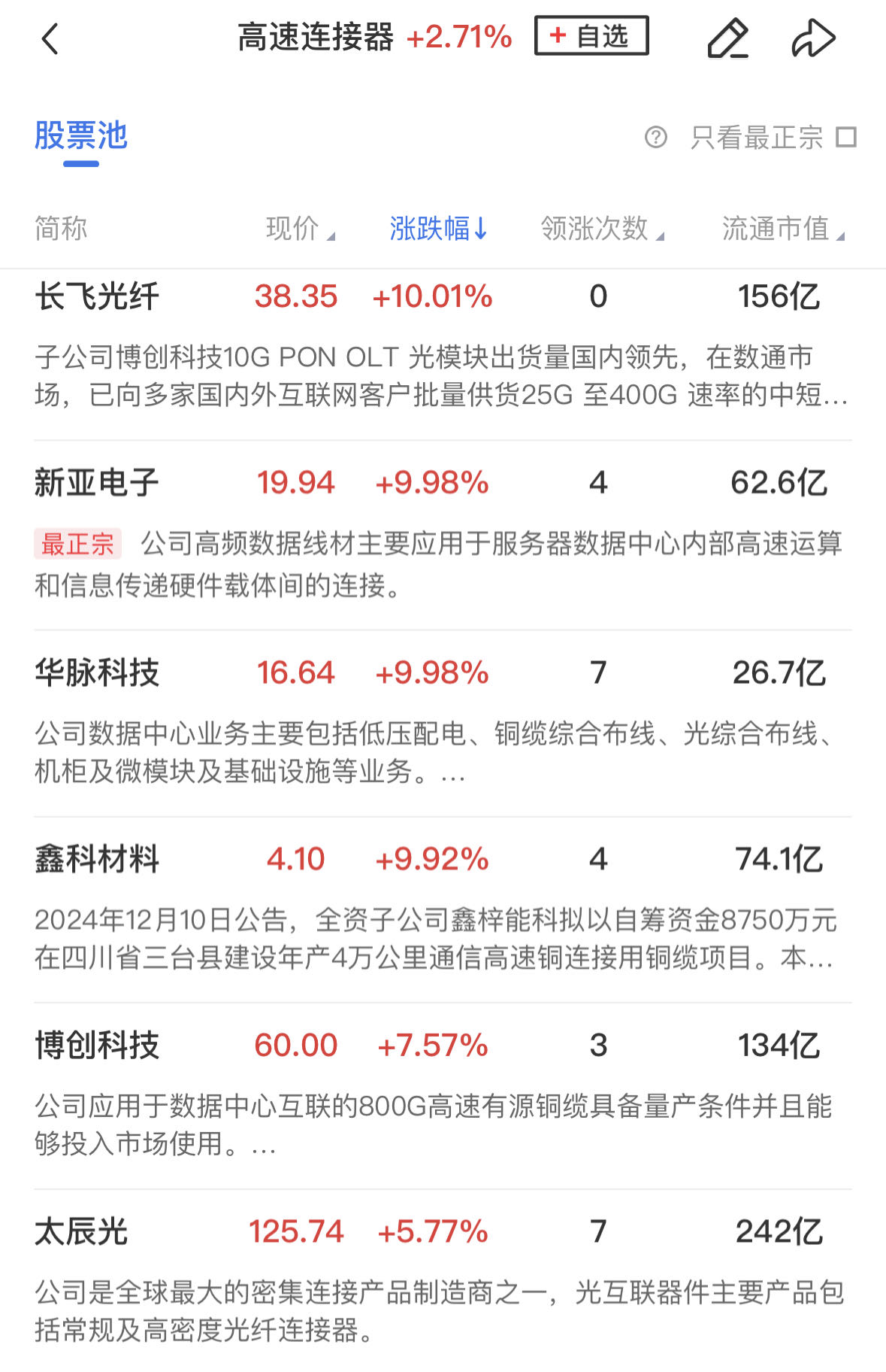铜缆高速连接概念股反复活跃 新亚电子3连板,长飞光纤、华脉科技、鑫科材料涨停,博创科技、太辰光、华丰科技等跟涨。华鑫证券指出,作为服务器连接以及在解耦合式交换机和路由器中用作互连,高速铜缆的销售不断增长。预计从2023年到2027年高速铜缆的年复合增长率为25%,到2027年,高速铜缆的出货量预计将达到2000万条。