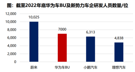 投入:自2019年智能汽车解决方案BU成立以来,截至2022年底累计投入已达30亿美元,研发团队达到7,000人的规模(2021年投入为10亿美元,研发团队为5000人,截止2022年7月华为研发人员超过7000人,三年内累计研发投入超过200亿人民币)。