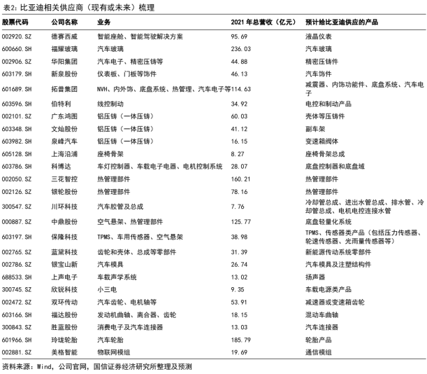 新泉 股份 | 奇瑞汽车内饰系统正式供应商。公司是国内汽车内饰领域重点企业,主要产品包括仪表板总成、门内护板总成和立柱护板总成等,单车价值量较高。公司深度挖掘长三角汽车产业集群的机遇,与奇瑞汽车等主机厂长期深度合作,有望从奇瑞-华为合作中受益。 |