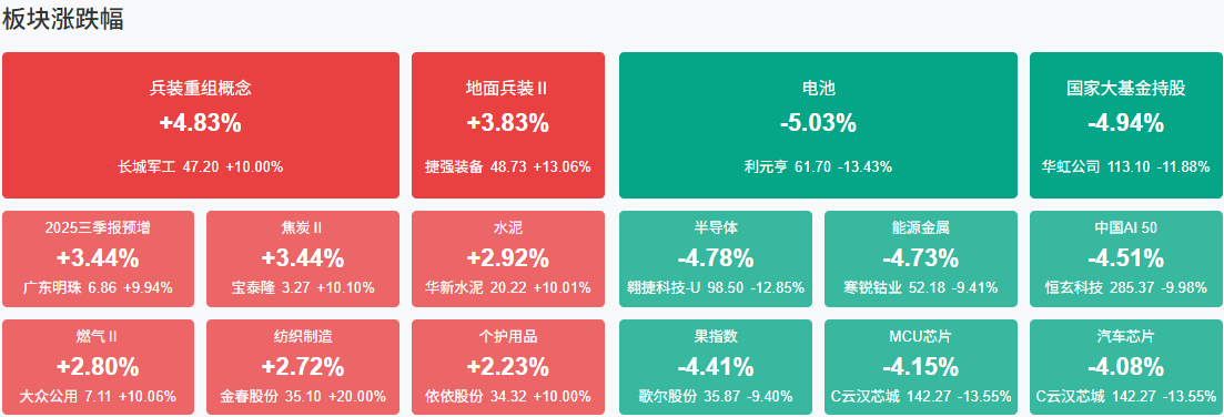 板块方面,燃气、煤炭等板块涨幅居前,半导体、电池、贵金属等板块跌幅居前。截至收盘,沪指跌0.94%,深成指跌2.70%,创业板指跌4.55%。