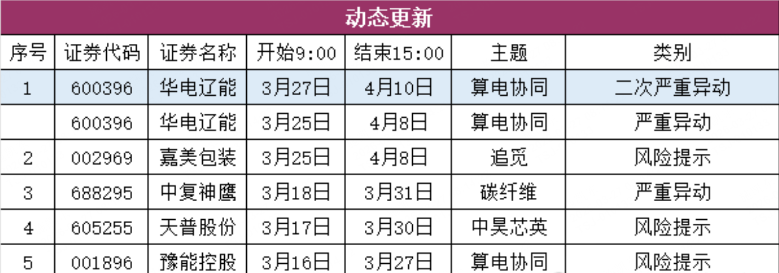 二、异动监管(动态更新)
