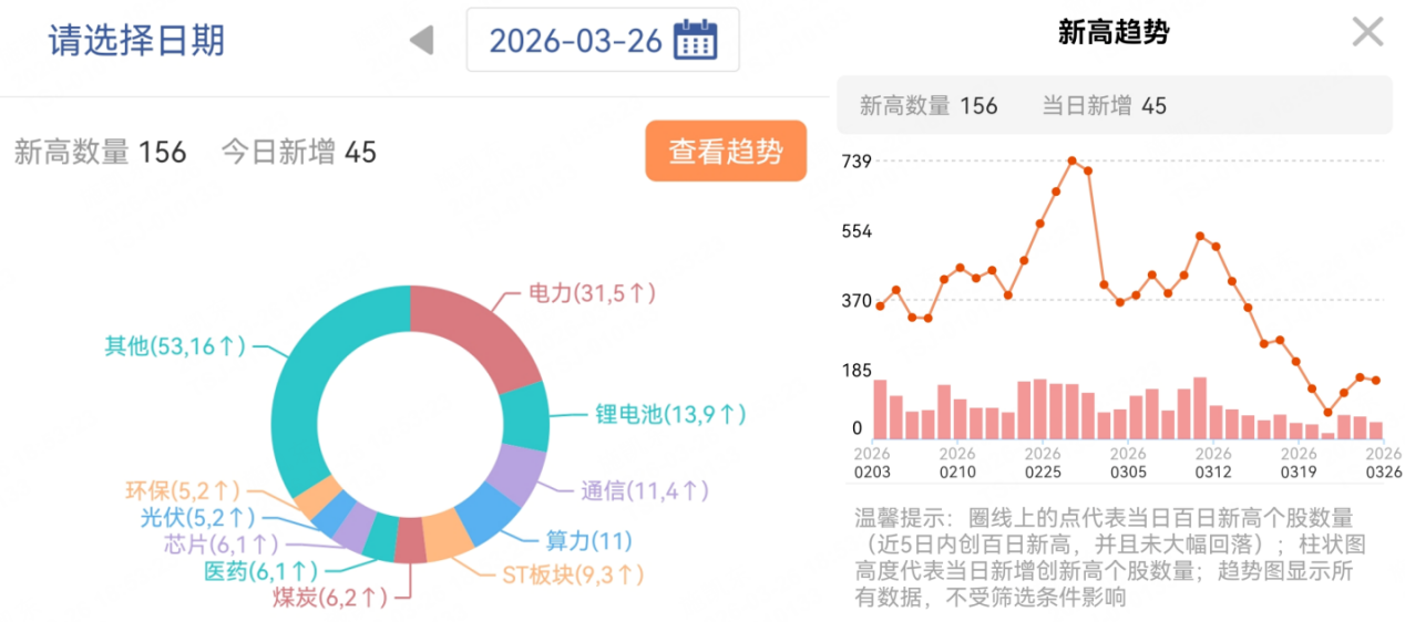 从百日新高去看,板块新高数量前4:电力>锂电池>通信>算力