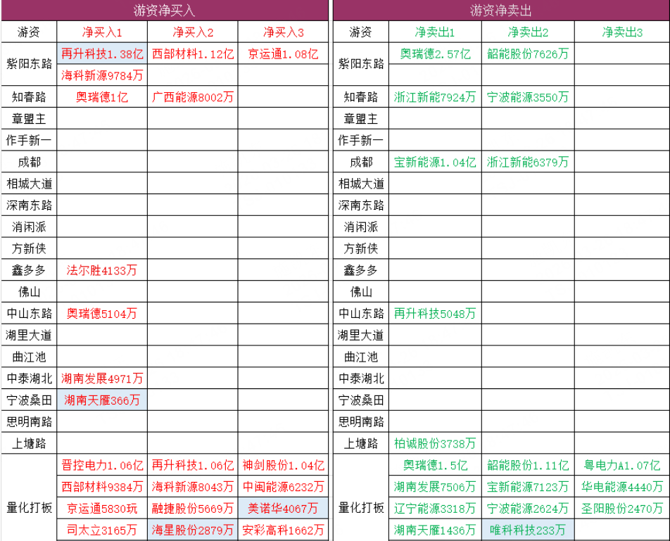 游资动向: