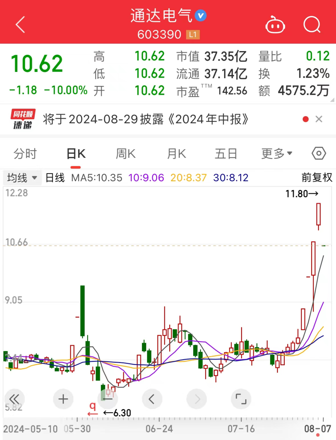 8月6日晚间,通达电气发布股价异常波动公告,公司表示,目前生产经营活动正常,日常经营情况未发生重大变化,市场环境、行业政策未发生重大调整,生产成本和销售等情况未出现大幅波动,内部生产经营秩序正常,相关订单、合同正常履行。公司还提示了四大风险:
