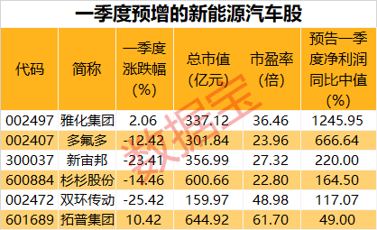 6只新能源汽车股一季度预增