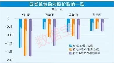 投资者普遍关心上述函件对公司股价的影响。理论上来说,上市公司收到问询函或关注函,与股价不存在利空或利好关系,交易所向上市公司发送这类函件是为了督促上市公司准确、及时执行信披任务,把信披效能最大化落到实处。至于监管函和警示函,则要看函件的具体内容,才能来判断其对公司股价的影响方向和程度。