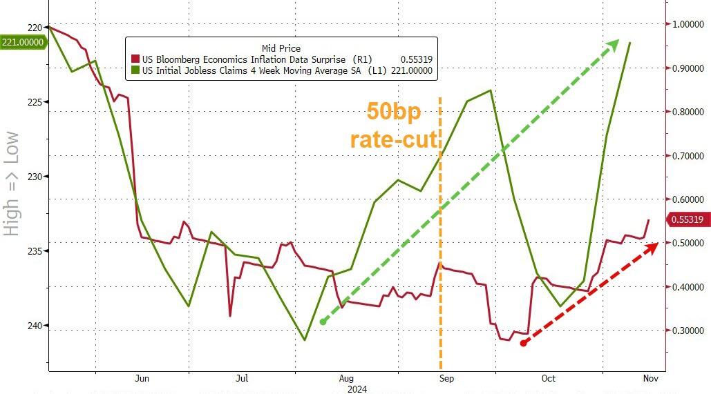 事实上,即便抛开鲍威尔的鹰派讲话,近来一系列的美国经济数据似乎也并不怎么支持降息。如下图所示,目前美国初请失业金人数已跌至了六个月低点,通胀数据则整体强于预期,经济和通胀形势似乎仍面临着“不着陆”的风险。