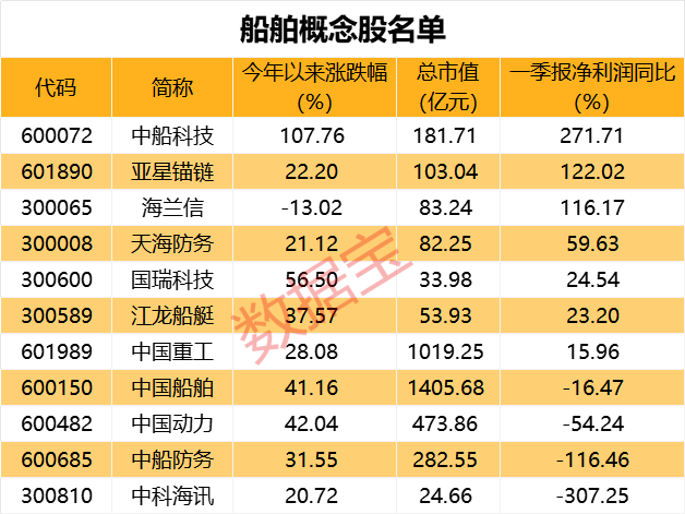 证券时报·数据宝统计,A股中船舶概念股有11只,目前有3股已经发布了上半年业绩预告,均预喜。