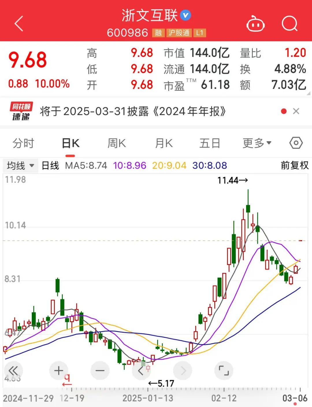 与蓝耘科技相关的A股公司早盘开盘大涨,其中浙文互联开盘巨量涨停。截至上午收盘,浙文互联报9.68元,上涨10%,市值144亿元。京源环保高开高走,9点46分即封上“20cm”涨停,市值近19亿元。
