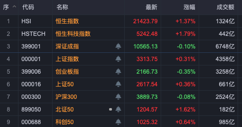 今日早盘,A股小幅震荡,主要股指涨跌互现,科技成长股继续领涨,北证指数盘中一度涨超2%,科创50指数也放量上攻。上涨个股数量多于下跌个股,市场成交呈现温和放大的趋势,半日成交额突破1万亿元。