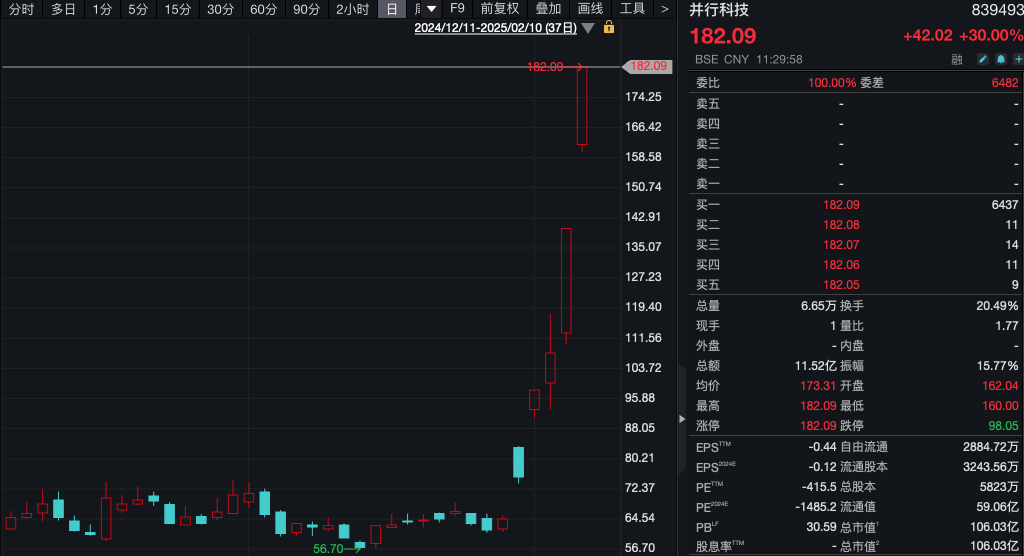 早间DeepSeek概念继续大涨,板块指数放量高开高走涨逾5%,随着DeepSeek概念的持续火爆,红利开始外溢,算力概念早间全线走强,算力租赁板块指数直接高开创历史新高,春节后4个交易日合计大涨逾17%。