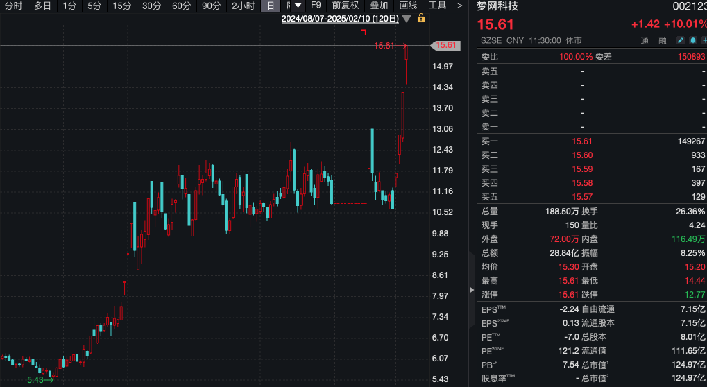 电信服务板块也在DeepSeek概念带动下大幅走强,早间一度大涨逾7%,创2019年3月以来近6年新高,仅1小时成交就超过前一交易日全天成交。