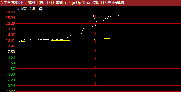 今日上市的新股中草香料表现异常活跃,盘中2度因涨幅达到限制而临停,也未能抑制住其上涨的趋势,截至午间收盘,以最高价29.96元报收,较发行价7.5元大涨299.35%。